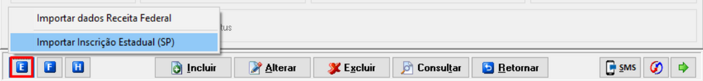 6. O mesmo se aplica para busca automática da Inscrição Estadual para contribuintes do estado de São Paulo, clicando na opção E, selecione importar Inscrição Estadual (SP);