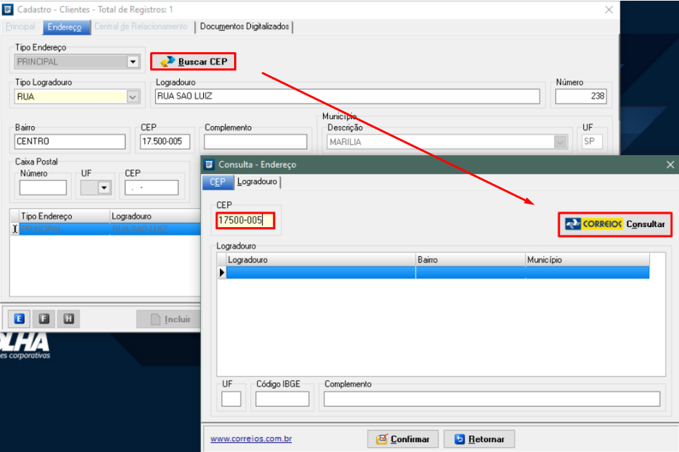 9. Na aba ENDEREÇO também é possível buscar as informações de preenchimento de forma automática informando o CEP na opção BUSCAR CEP;