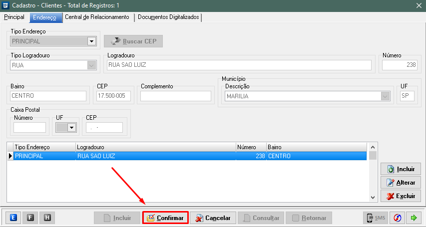 Obs.: Caso o cliente possua apenas um endereço, este deve ser cadastrado como PRINCIPAL, conforme as orientações acima. Se existir mais de um endereço, pode ser atribuída uma das demais opções em tipo de endereço.