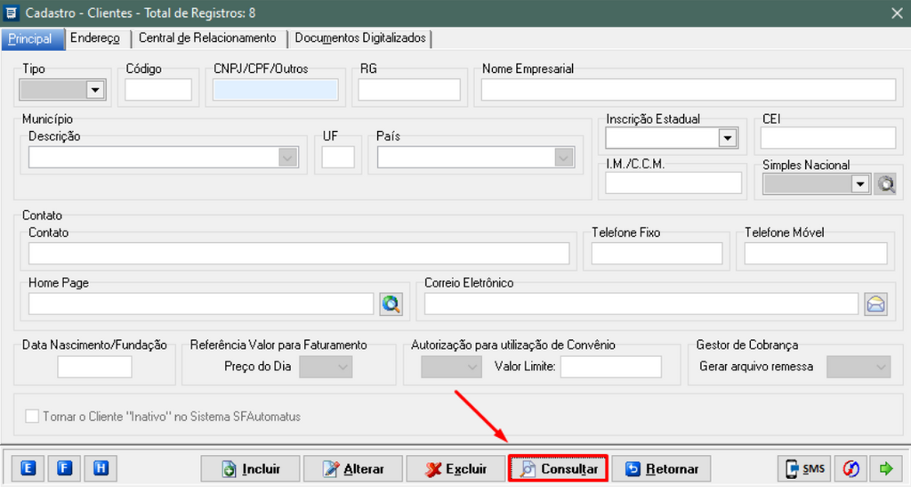 11. Para consultar a relação de clientes cadastrados, clique em “Consultar”;
