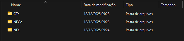 3. Consulte a pasta que indicou no caminho da geração dos arquivos XML.