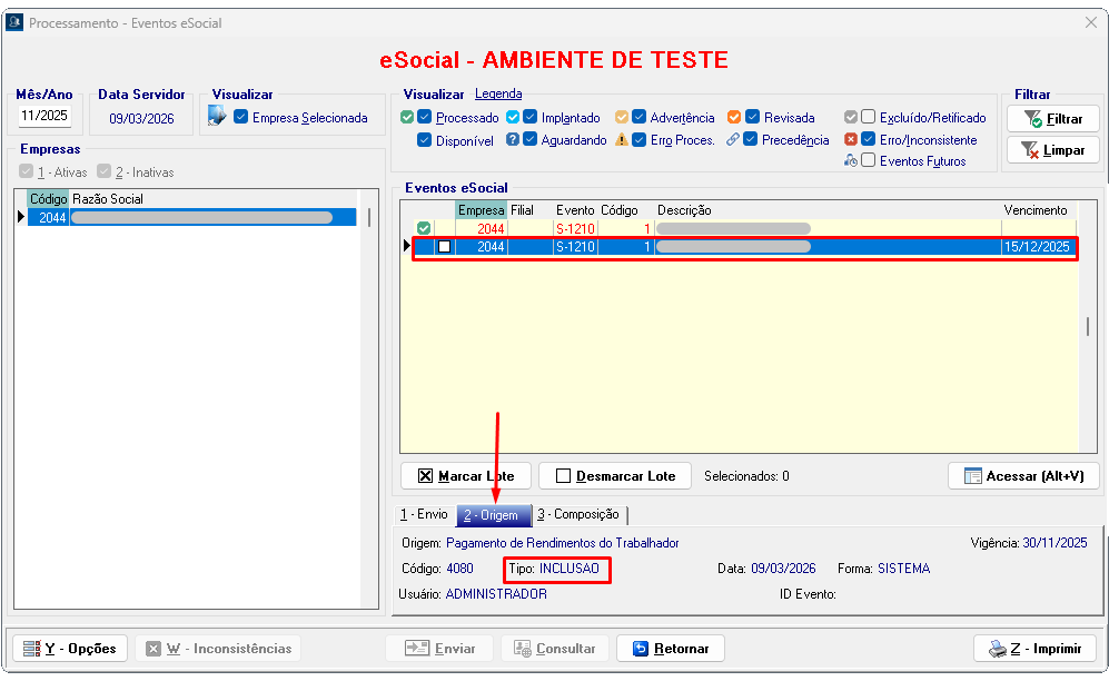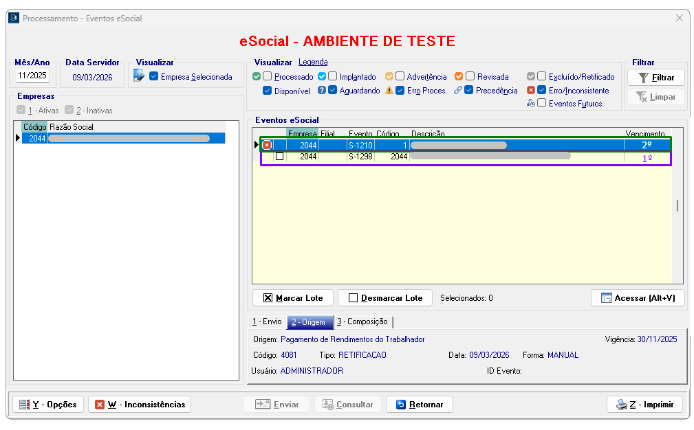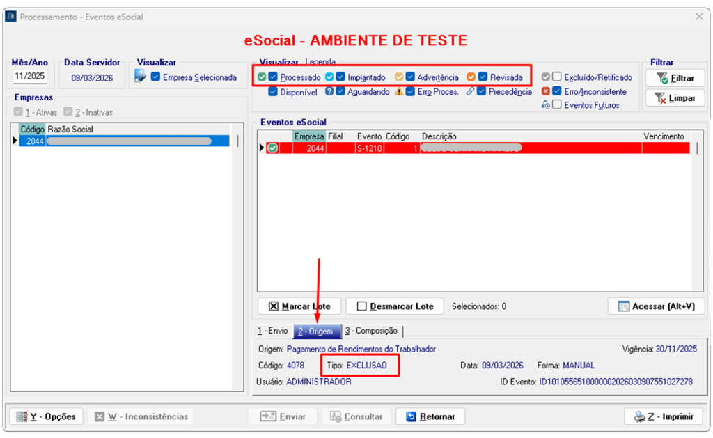 Processamento → eSocial → Eventos