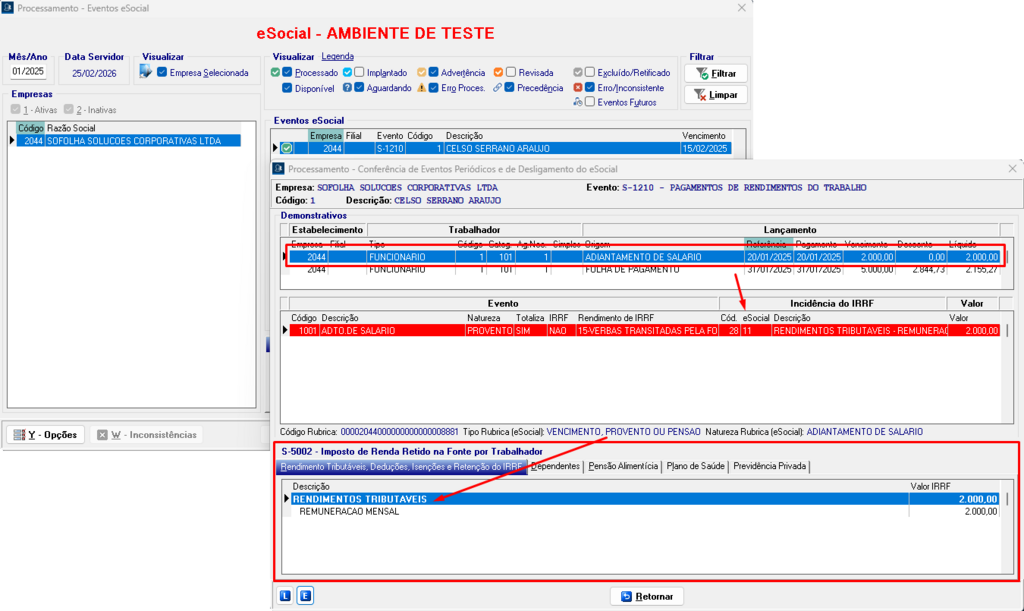 Isso ocorrerá se a empresa possuir ao menos um lançamento de Adiantamento de Salário com incidência de IRRF após o início dos Eventos Periódicos.