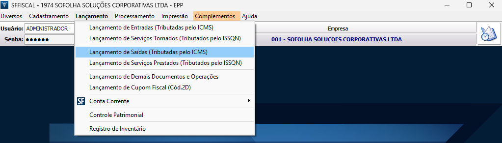 1. Na tela principal do sistema acesse o menu Lançamento > Lançamento de Saídas;